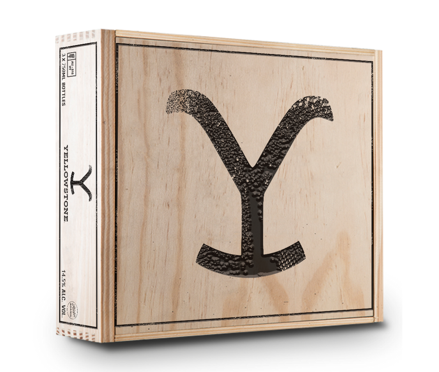 Yellowstone fire-branded 3-bottle vintage wooden wine crate, this will also include 2 crate hinges to connect the top lid to the crate so it can open and shut. Please note that the purchase includes the wood crate only, and wine is not included.