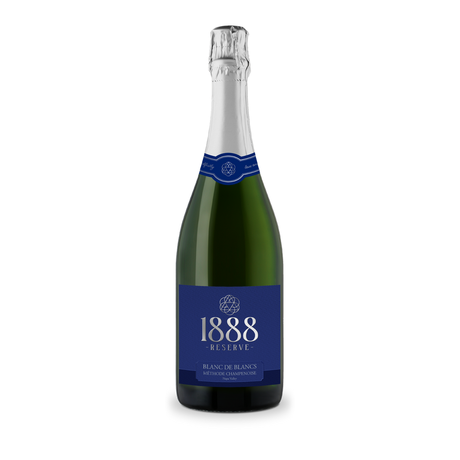We introduce you to 1888 Reserve. This is a premium sparkling wine – meticulously and artfully made in the traditional Champagne method, rivaling anything found in the best Champagne houses in Épernay and Reims. Blended superbly with 100% Chardonnay, this magnificent Napa Valley Blanc de Blancs exhibits beautiful green apple and tropical notes that follow through in the mouth with a smooth fine mousse. This wine finishes with refreshing, lingering light tropical flavors that beg for another sip.