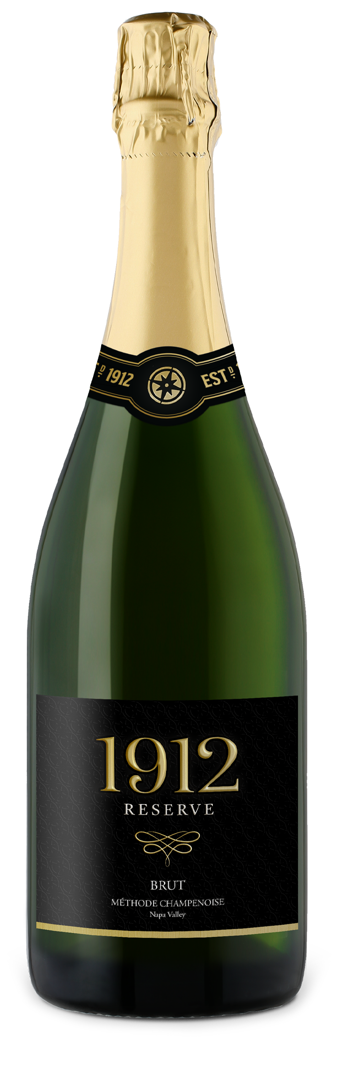 We introduce you to 1912 Reserve. This premium sparkling wine – meticulously and artfully made in the traditional champagne method – rivals anything found from the best Champagne houses in Épernay and Reims. Blended superbly from Chardonnay and Pinot Noir, this magnificent Napa Valley Brut exhibits rich fruit aromatics of strawberry and delicate white cherry that follows through to a creamy mid-palate accompanied with highlights of lime and wet minerality and a lingering vibrant finish.