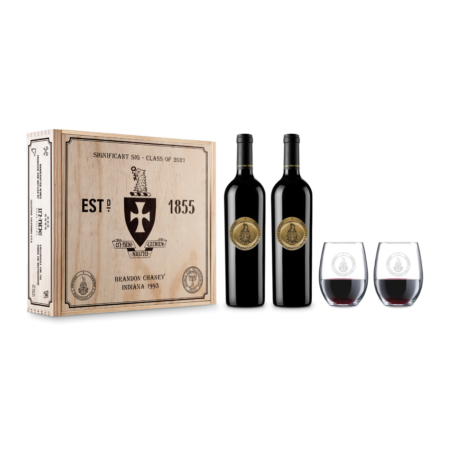 Commemorate the achievements of Significant Sigs with custom-made wooden crates and wines.