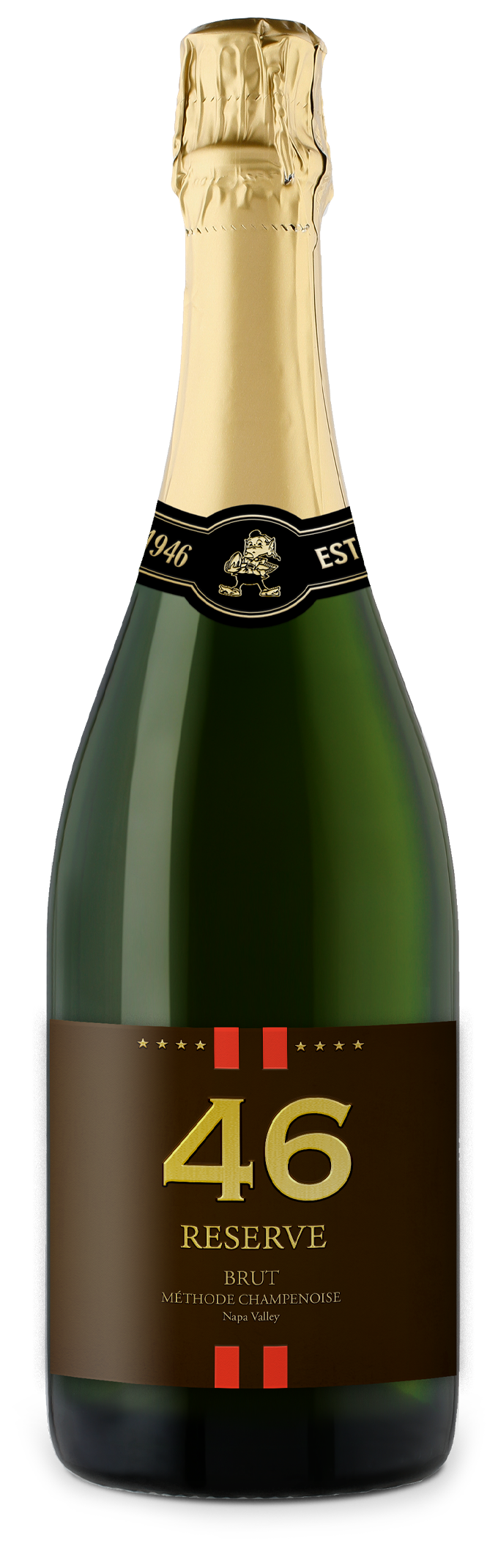 We introduce you to 46 Reserve. This premium sparkling wine – meticulously and artfully made in the traditional champagne method – rivals anything found from the best Champagne houses in Épernay and Reims. Blended superbly from Chardonnay and Pinot Noir, this magnificent Napa Valley Brut exhibits rich fruit aromatics of strawberry and delicate white cherry that follows through to a creamy mid-palate accompanied with highlights of lime and wet minerality and a lingering vibrant finish.