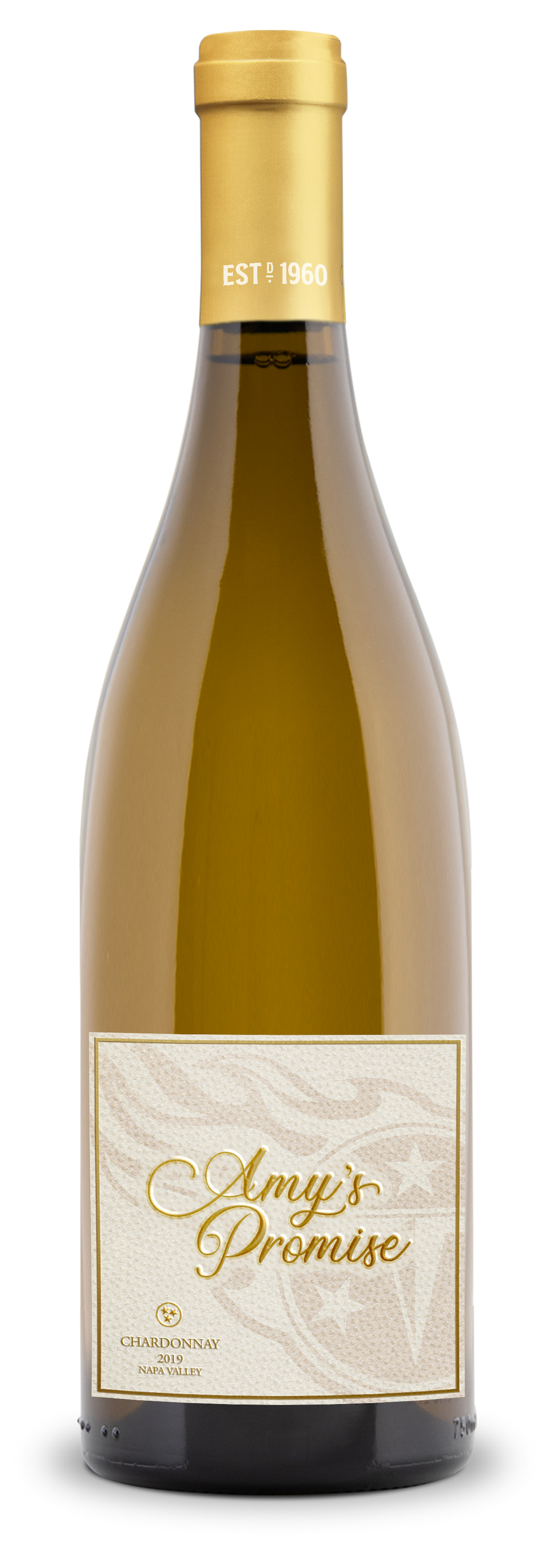 We introduce to you Amy’s Promise. From the chalky soil of the Carneros region in southern Napa Valley, this gem exhibits lush green apple and bright grapefruit notes while dancing across your palate. This stunning wine is light and friendly with very subtle vanilla and pear blossom hints on the nose. Balanced fruit with tarte acidity makes this wine a classic example of Premium Napa Chardonnay.