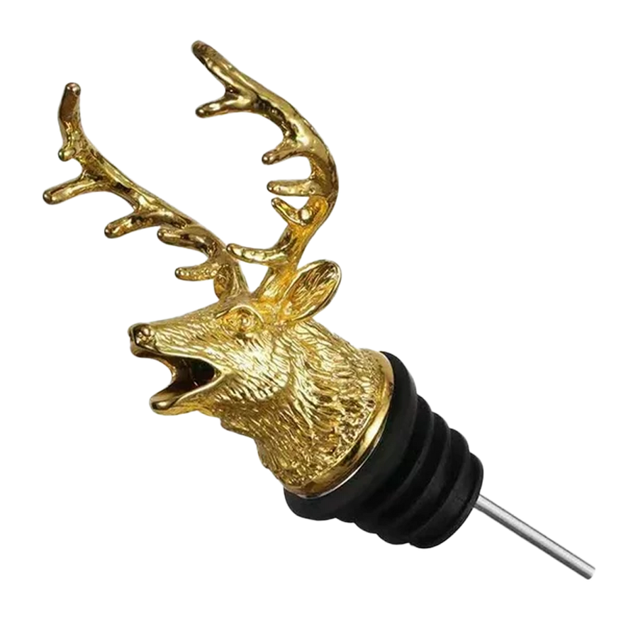 Elevate your wine experience with our Reindeer Head Wine Pourer made from stainless steel. Crafted for elegance and functionality, it features a silicone rubber fitting to help preserve the cleanliness of your bottle while also aerating your wine.