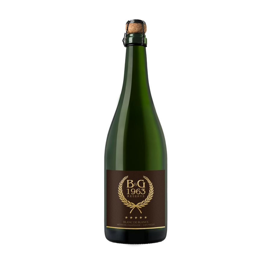 We introduce you to B&G 1963 Reserve. Pop open this bubbly and enjoy life’s special moments with a toast or bring an extra sparkle to everyday moments. This premium sparkling wine – meticulously and artfully made in the traditional champagne method – rivals anything found from the best Champagne houses in Épernay and Reims. Blended superbly with 100% Chardonnay, this magnificent Napa Valley Blanc de Blancs exhibits beautiful green apple and tropical notes that follow through in the mouth with a smooth fine mousse. This wine finishes with refreshing, lingering light tropical flavors that beg for another sip.