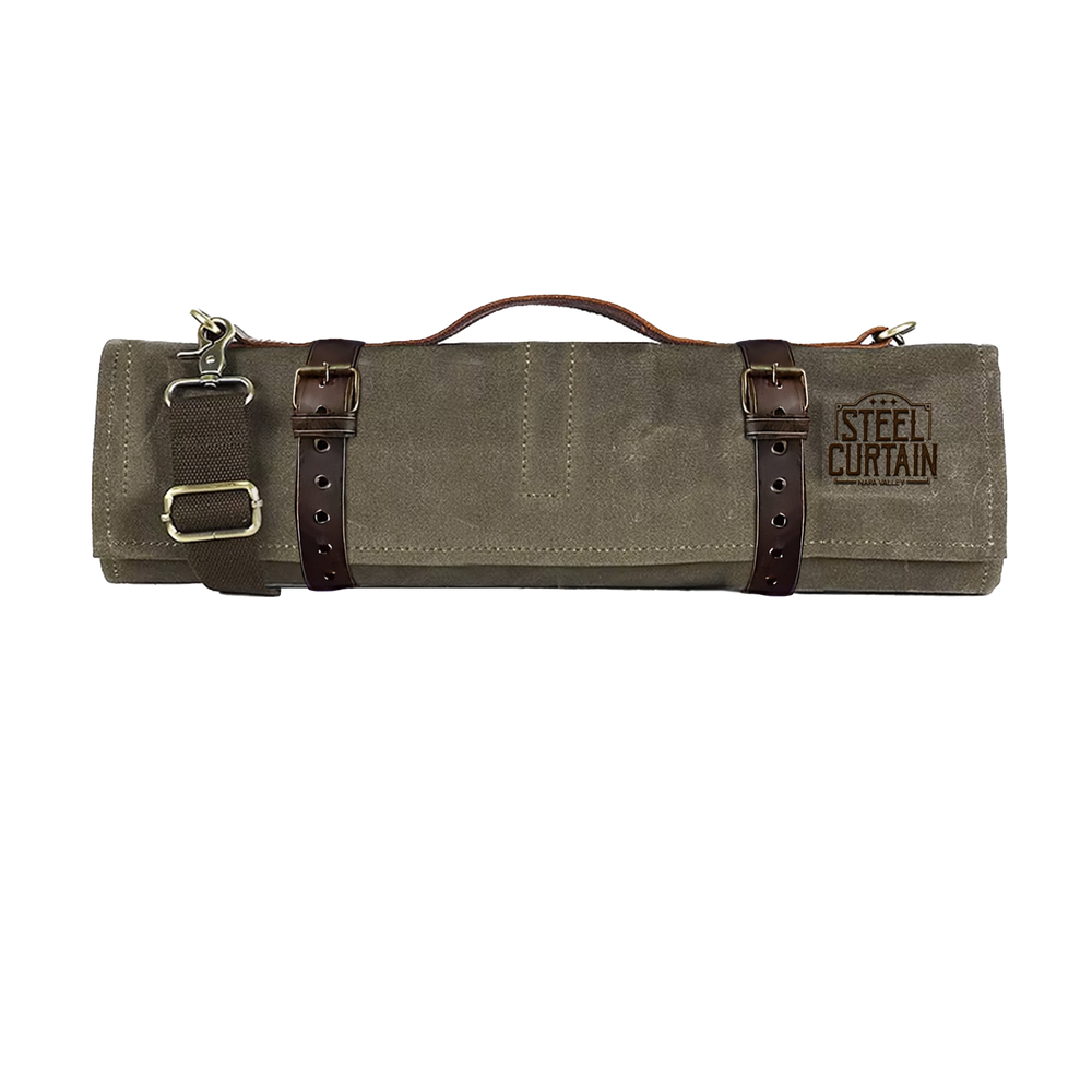 Constructed with tough, waterproof waxed canvas, and top-grain leather for durability, this stylish, portal, and multi-functional storage roll bag is built to last many years to come. The waxed canvas interior flap keeps stored grilling tools and knives secure and protect the user when rolling