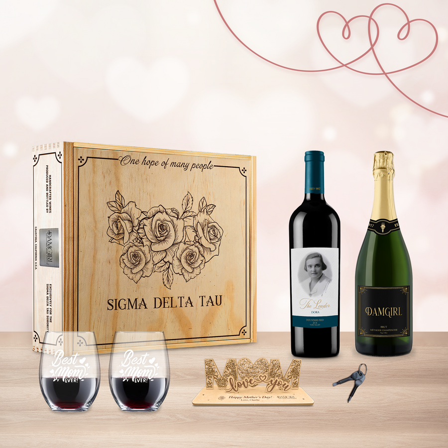 Our sparkling wine was created to honor the seven women who founded Sigma Delta Tau at Cornell University in 1917. Each founder brought something unique to the organization and their collective spirit created the legacy our sisters have been gifted. The DAMGIRL acronym was created as a way to highlight and discuss our founders using the first letter of each of their first names. Open a bottle of DAMGIRL wine to celebrate our seven founders and the special occasions in your life.
