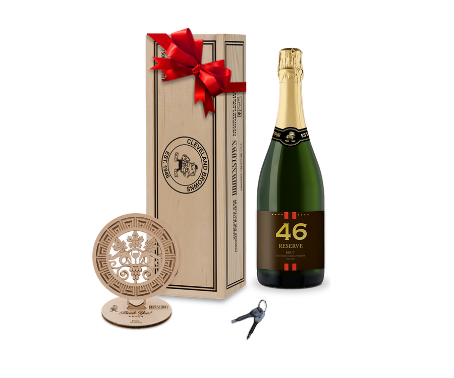 We introduce you to 46 Reserve. This premium sparkling wine – meticulously and artfully made in the traditional champagne method – rivals anything found from the best Champagne houses in Épernay and Reims. Blended superbly from Chardonnay and Pinot Noir, this magnificent Napa Valley Brut exhibits rich fruit aromatics of strawberry and delicate white cherry that follows through to a creamy mid-palate accompanied with highlights of lime and wet minerality and a lingering vibrant finish.