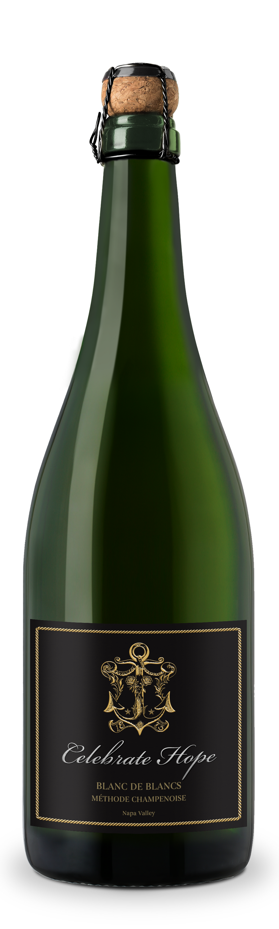 We introduce to you Celebrate Hope. This premium sparkling wine – meticulously and artfully made in the traditional champagne method – rivals anything found from the best Champagne houses in Épernay and Reims. Blended superbly from Chardonnay and Pinot Noir, this magnificent Napa Valley Brut exhibits rich fruit aromatics of strawberry and delicate white cherry that follows through to a creamy mid-palate accompanied with highlights of lime and wet minerality and a lingering vibrant finish.
