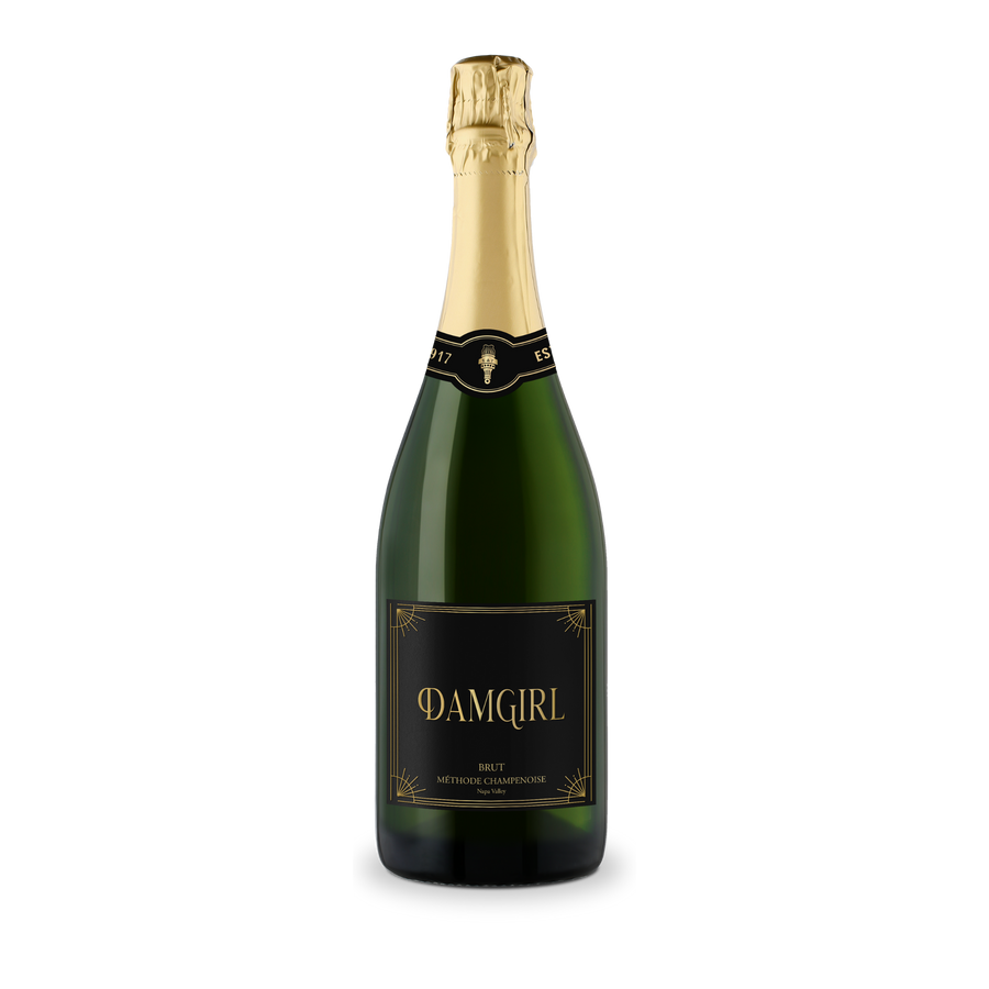 We introduce you to DAMGIRL. This premium sparkling wine – meticulously and artfully made in the traditional champagne method – rivals anything found from the best Champagne houses in Épernay and Reims. Blended superbly from Chardonnay and Pinot Noir, this magnificent Napa Valley Brut exhibits rich fruit aromatics of strawberry and delicate white cherry that follows through to a creamy mid-palate accompanied with highlights of lime and wet minerality and a lingering vibrant finish.