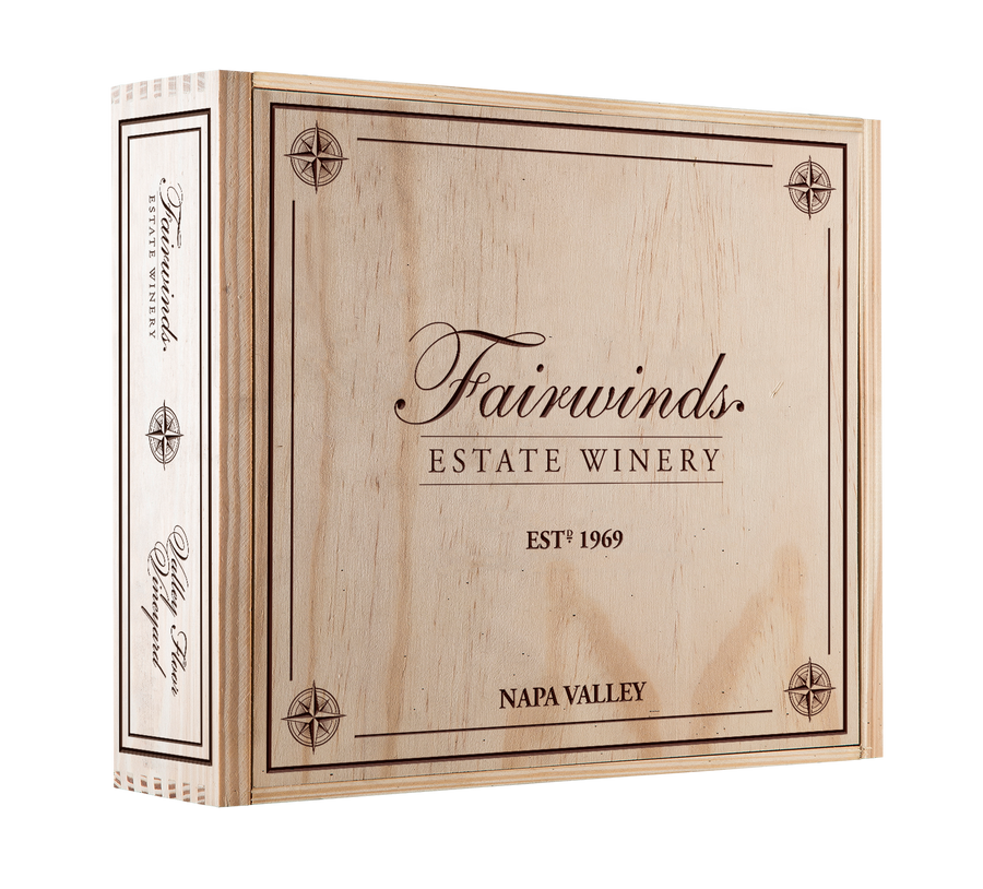 Fairwinds fire-branded 3-bottle vintage wooden wine crate, this will also include 2 crate hinges to connect the top lid to the crate so it can open and shut. Please note that the purchase includes the wood crate only, and wine is not included.