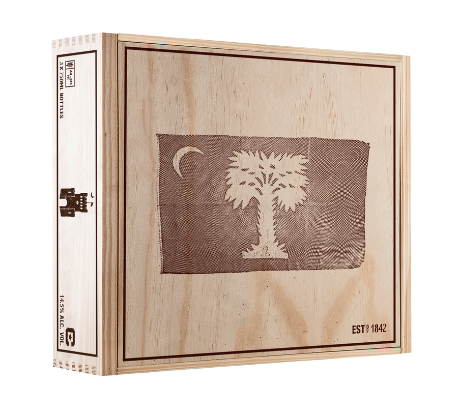 Long Gray Line fire-branded 3-bottle vintage wooden wine crate, this will also include 2 crate hinges to connect the top lid to the crate so it can open and shut. Please note that the purchase includes the wood crate only, and wine is not included.