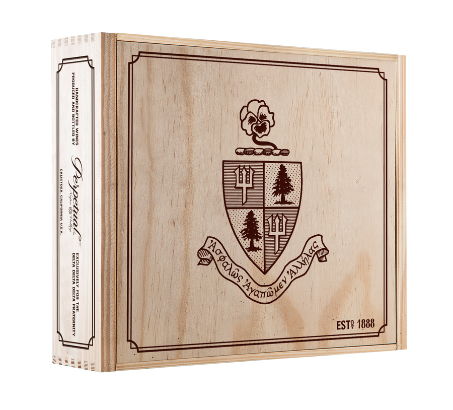 Perpetual fire-branded 3-bottle vintage wooden wine crate, this will also include 2 crate hinges to connect the top lid to the crate so it can open and shut. Please note that the purchase includes the wood crate only, and wine is not included.
