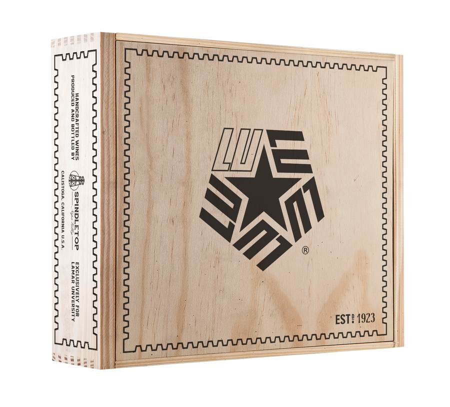 Spindletop fire-branded 3-bottle vintage wooden wine crate, this will also include 2 crate hinges to connect the top lid to the crate so it can open and shut. Please note that the purchase includes the wood crate only, and wine is not included.