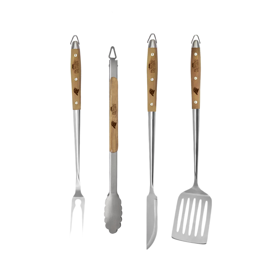 Upgrade your grilling tools with our 4-piece BBQ Grill Set. Crafted from thick stainless steel, this durable set includes long-handled tongs, a spatula, a fork and a knife. Designed for heat resistance and easy cleaning, it’s perfect for all your cooking needs.