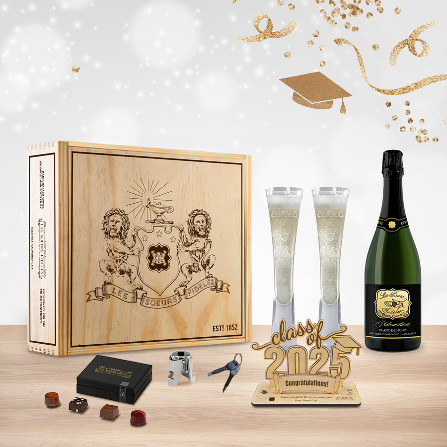 In 1852, young students at Wesleyan College, the first institution to grant degrees to women, founded the Philomathean Society as a literary organization to support one another in their academic endeavors. The Philomathean Society became Phi Mu Fraternity in 1904. The spirit of the Philomatheans, and of our sisters always being there for one another, lives on in every Phi Mu. Raise a glass of bubbly Philomathean for any celebratory occasion and toast to our everlasting, steadfast sisterhood!