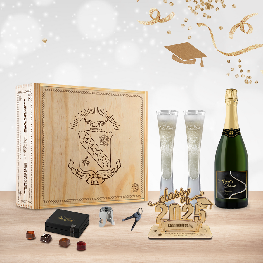 Our Mystic Bond Reserve brut sparkling was created to celebrate the best of times with our sisters. The Mystic Bond defines the connection all Sigma Kappa members share. A bond that transcends time, linking our Founders and Sigma Kappas past and present. It’s in this bond that Sigma Kappa members strive for a balance of social, spiritual and intellectual excellence, motivated to become the best versions of ourselves.
