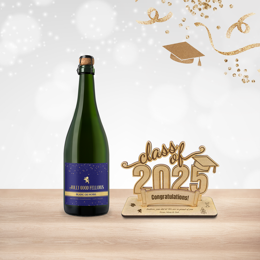 We introduce you to Jolly Good Fellows. This premium sparkling wine – meticulously and artfully made in the traditional champagne method – rivals anything found from the best Champagne houses in Épernay and Reims. Blended superbly from Chardonnay and Pinot Noir, this magnificent Napa Valley Brut exhibits rich fruit aromatics of strawberry and delicate white cherry that follows through to a creamy mid-palate accompanied with highlights of lime and wet minerality and a lingering vibrant finish.