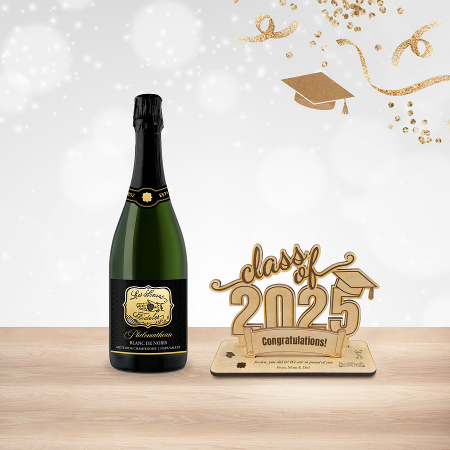 We introduce you to Philomathean. This premium sparkling wine – meticulously and artfully made in the traditional champagne method – rivals anything found from the best Champagne houses in Épernay and Reims. Blended superbly from Chardonnay and Pinot Noir, this magnificent Napa Valley Brut exhibits rich fruit aromatics of strawberry and delicate white cherry that follows through to a creamy mid-palate accompanied with highlights of lime and wet minerality and a lingering vibrant finish.