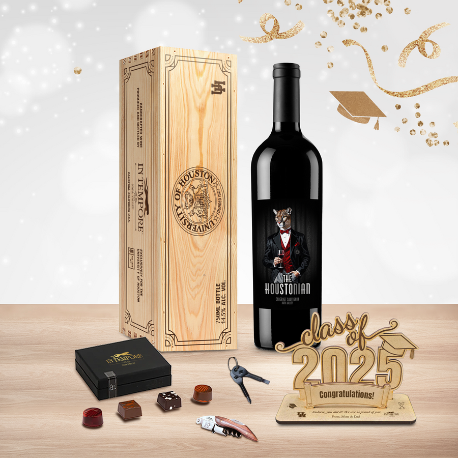 Elegant and refined, smooth yet vibrant, The Houstonian makes a bold entrance. Turning your ordinary evening into an extraordinary night is no feat for this ferocious feline. Birthed in the rich, sun-kissed soils of Napa Valley, and aged to perfection, this elusive yet inviting wine will captivate you. In time, it will carry you away.