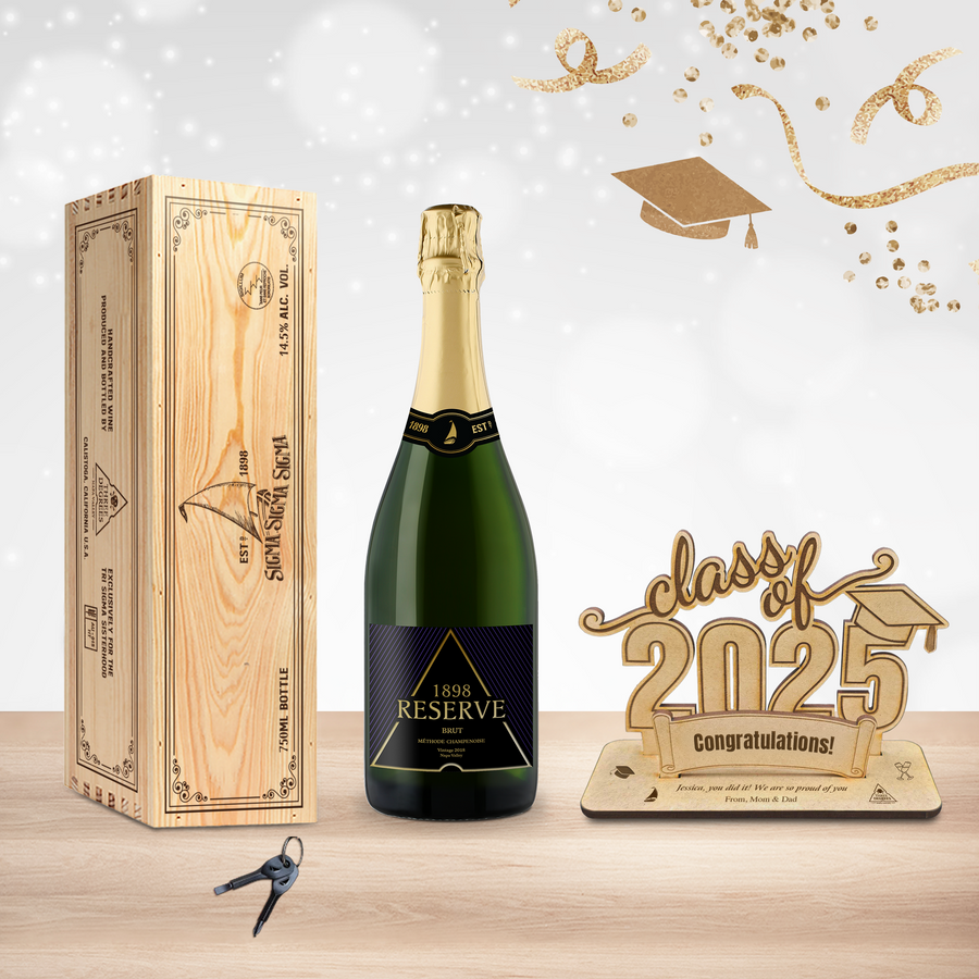 Every sparkling pearl on our indented triangle badge is beautiful and unique, just as our sisterhood is made beautiful and unique by each sister added. Celebrating all that our sisters have brought to Tri Sigma, our 1898 Reserve brut sparkling reminds us of all we have given and received from our membership.