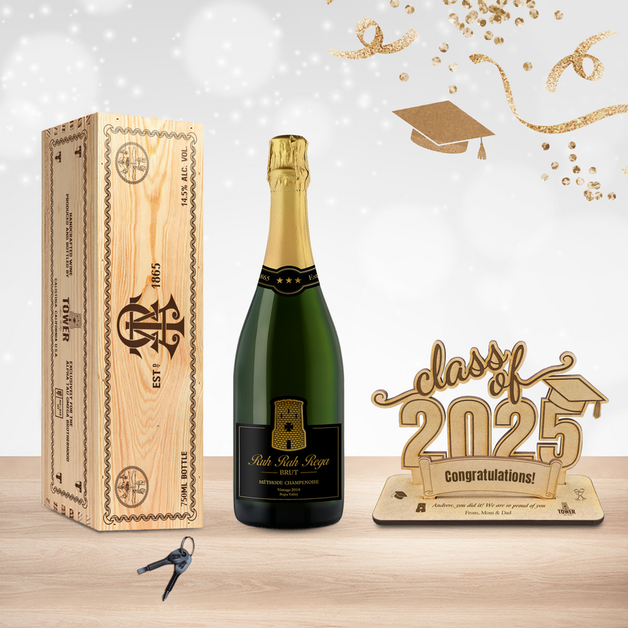 We introduce to you with tremendous pride, Ruh Rah Rega. This premium sparkling wine – meticulously and artfully made in the traditional champagne method – rivals anything found from the best Champagne houses in Épernay and Reims. Blended superbly from Chardonnay and Pinot Noir, this magnificent Napa Valley Brut exhibits rich fruit aromatics of strawberry and delicate white cherry that follows through to a creamy mid-palate accompanied with highlights of lime and wet minerality and a lingering vibrant finish. It should be shared among brothers in celebration of all life’s victories! Ruh Rah Rega!