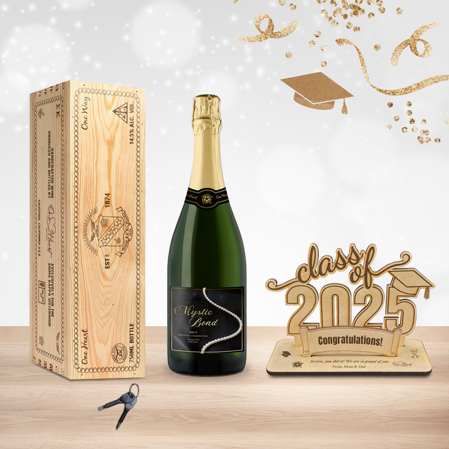 We introduce to you Mystic Bond. This premium sparkling wine – meticulously and artfully made in the traditional champagne method – rivals anything found from the best Champagne houses in Épernay and Reims. Blended superbly from Chardonnay and Pinot Noir, this magnificent Napa Valley Brut exhibits rich fruit aromatics of strawberry and delicate white cherry that follows through to a creamy mid-palate accompanied with highlights of lime and wet minerality and a lingering vibrant finish.