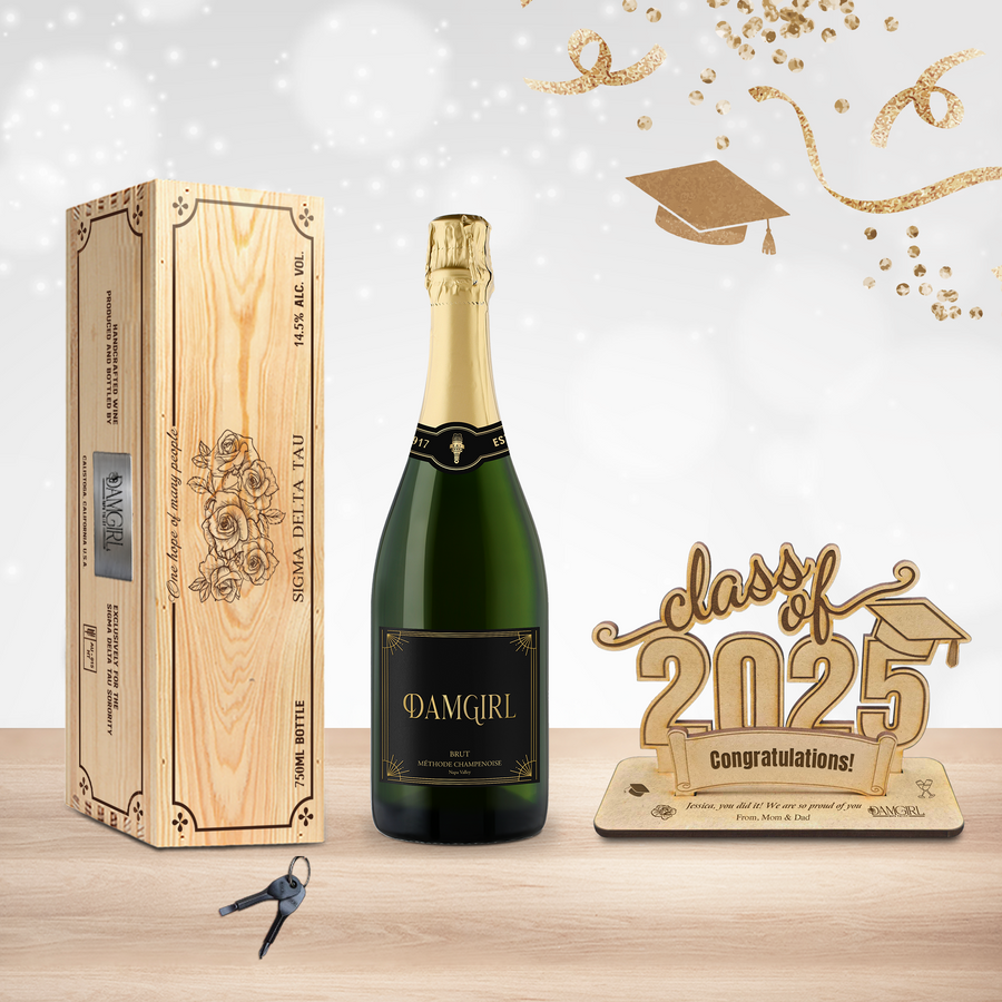 Our sparkling wine was created to honor the seven women who founded Sigma Delta Tau at Cornell University in 1917. Each founder brought something unique to the organization and their collective spirit created the legacy our sisters have been gifted. The DAMGIRL acronym was created as a way to highlight and discuss our founders using the first letter of each of their first names. Open a bottle of DAMGIRL wine to celebrate our seven founders and the special occasions in your life.