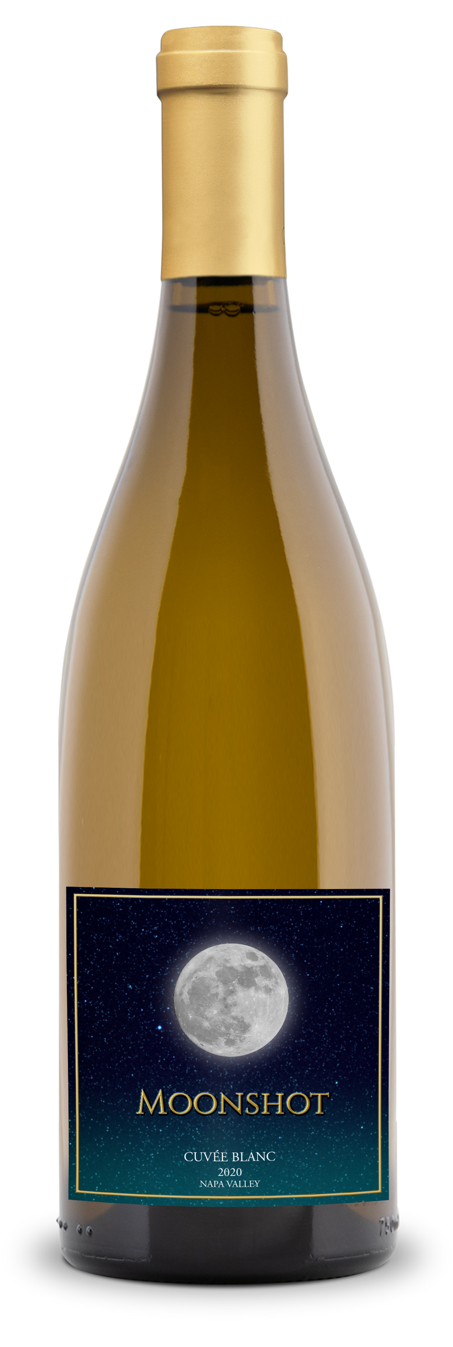 We introduce you to Moonshot. This elegant white wine blend is alluring and complex, with a sensuous offering of tropical fruits, white flowers and subtle spice. The nose is like a bouquet of flowers and jumps from the glass with ripe lemon, white peach and orange blossom followed by notes of toast and white pepper. On the tongue, lemon bursts forward with pineapple and other tropical fruit, with undertones of vanilla. The finish is bright and zingy and mellows with vanilla and subtle spices in its length.