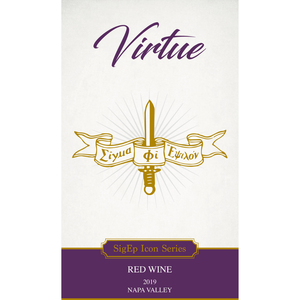 We introduce you to SigEp Icons Series - Virtue. This 2019 Red Wine is an artful red blend created by winemaker Todd Heth. This wine exhibits dark blackberry, bing cherry and plum notes perfectly into layers of coffee and tobacco. The finish is dry with long lasting berry fruit. Silky but firm tannins, this wine is enjoyable now but has the ability to age well in the cellar.