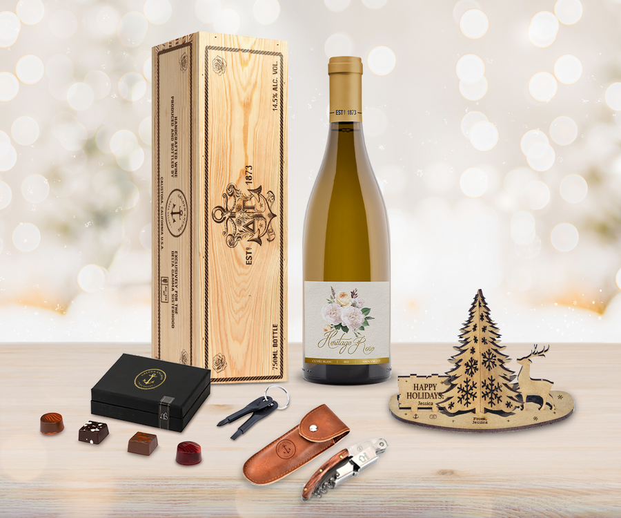 We introduce you to our elegant Heritage Rose Cuvée Blanc. This is an alluring and complex white wine blend, with a sensuous offering of tropical fruits, white flowers and subtle spice. The nose is like a bouquet of flowers and jumps from the glass with ripe lemon, white peach and orange blossom followed by notes of toast and white pepper. On the tongue, lemon bursts forward with pineapple and other tropical fruit, with undertones of vanilla. The finish is bright and zingy and mellows with vanilla and subtle spices in its length.