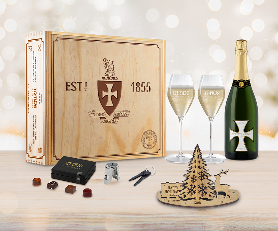 Our premium sparkling wine - meticulously and artfully made in the traditional champagne method - rivals anything found in the best Champagne houses in Épernay and Reims. Blended superbly from Chardonnay and Pinot Noir, this magnificent Napa Valley Brut exhibits rich fruit aromatics of strawberry and delicate white cherry that follow through to a creamy mid-palate accompanied with highlights of lime and wet minerality and a lingering vibrant finish. Constantine Brut should be shared during all of life’s great victories. In Hoc Signo Vinces!