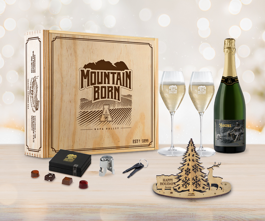 We introduce to you Boone Brut. This premium sparkling wine – meticulously and artfully made in the traditional champagne method – rivals anything found from the best Champagne houses in Épernay and Reims. Blended superbly from Chardonnay and Pinot Noir, this magnificent Napa Valley Brut exhibits rich fruit aromatics of strawberry and delicate white cherry that follows through to a creamy mid-palate accompanied with highlights of lime and wet minerality and a lingering vibrant finish.