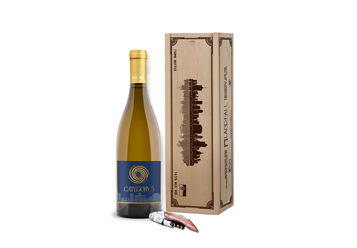 We introduce you to Category 5. Hailing from the cool and foggy climate for the Russian River Valley in Sonoma County, this beautiful medium bodied wine was grown slowly to build intense flavors over time. This wine was aged in French oak and displays a beautiful balance of fruit, oak and liveliness on the palate and exhibits lush mango and toasted almond. Balanced fruit with tarte acidity makes this wine a classic example of Premium Russian River Chardonnay.
