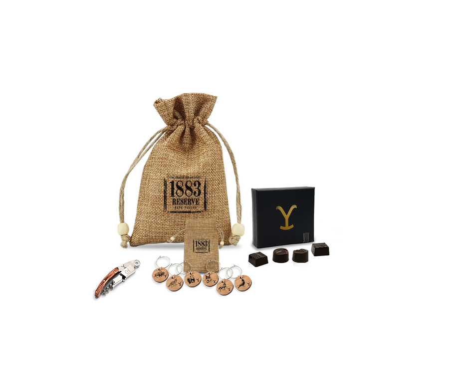 Make your event even more special with our Event Gifts bundle! Our bundle includes everything you need to impress your guests and give them a lasting memory of your event. The bundle includes a burlap bag, an 1883 Reserve Wine Key, a 4-piece chocolate truffle set, and 6 wine charms with a burlap drawstring bag. Shop now and elevate your event to the next level!