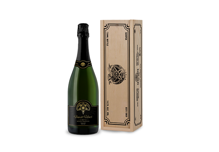 It is time to celebrate!  This is a beautiful gift box that includes a bottle of Finest Hour Sparkling Brut and perfect for any Brother that is celebrating life's great moments! The bottle is nestled in wood wool inside a single-bottle 12th Gate vintage wine crate and includes crate hinges and vintage card postmarked with the founding year of Kappa Sigma along with your personalized gift message.