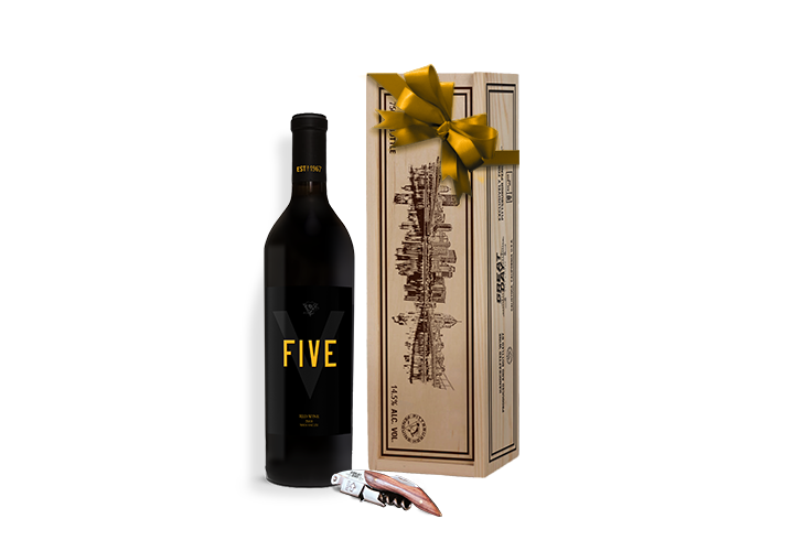 We introduce you to FIVE. This proprietary red blend – from our award-winning winemaker Todd Heth – exhibits dark blackberry, bing cherry, and plum notes perfectly into layers of coffee and tobacco. The finish is dry with long-lasting berry fruit. Silky but firm tannins, this wine is enjoyable now but has the ability to age well in the cellar.