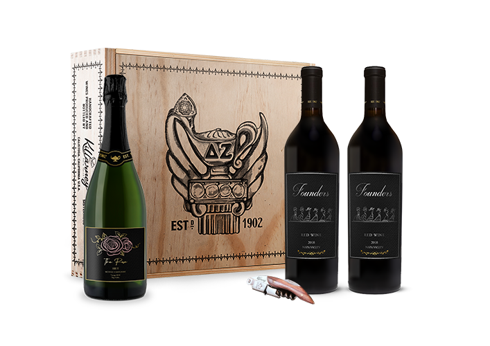 In the evening of Friday, September 27th, 1902 our six Founders paraded the Street Fair in Oxford with ribbons of pink and green tied to red, white, and blue canes, as depicted in this drawing straight from Founder, Julia Bishop’s Diary. This custom label is a nod to these six courageous women who were pioneers of their time, boldly paving the way for generations of Delta Zetas to come.
