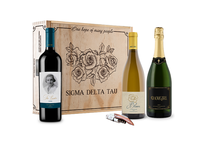 Our sparkling wine was created to honor the seven women who founded Sigma Delta Tau at Cornell University in 1917. Each founder brought something unique to the organization and their collective spirit created the legacy our sisters have been gifted. The DAMGIRL acronym was created as a way to highlight and discuss our founders using the first letter of each of their first names. Open a bottle of DAMGIRL wine to celebrate our seven founders and the special occasions in your life.