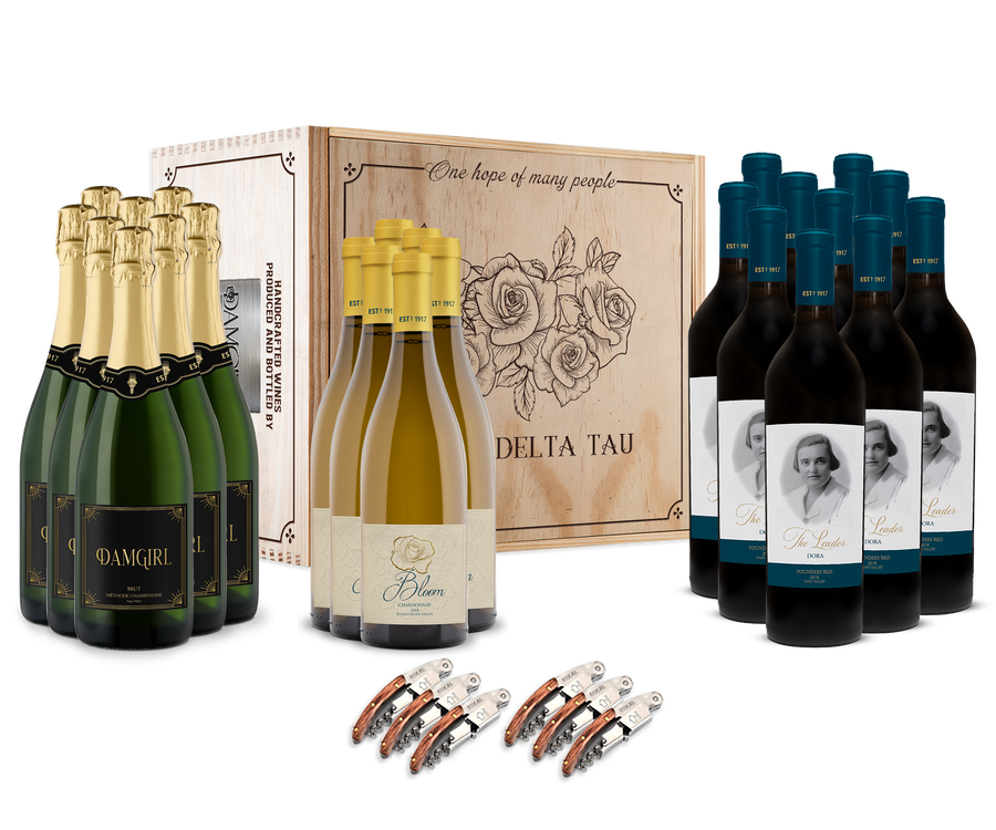 Our sparkling wine was created to honor the seven women who founded Sigma Delta Tau at Cornell University in 1917. Each founder brought something unique to the organization and their collective spirit created the legacy our sisters have been gifted. The DAMGIRL acronym was created as a way to highlight and discuss our founders using the first letter of each of their first names. Open a bottle of DAMGIRL wine to celebrate our seven founders and the special occasions in your life.