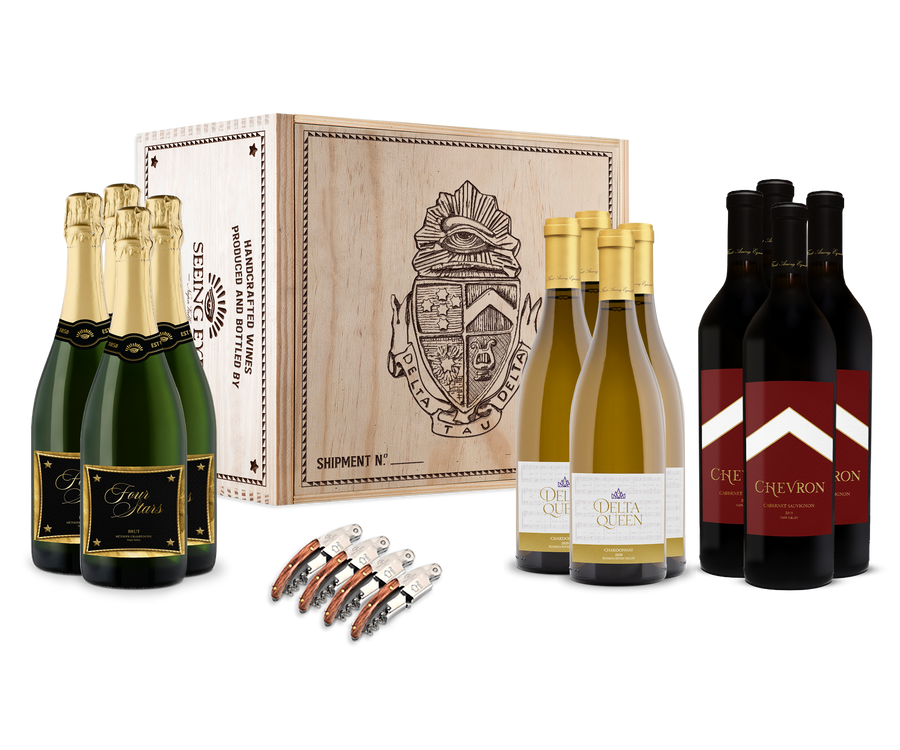 Whether you are enjoying with a brother, friend or family the Four Stars Champagne offers shades of nostalgia of a Delts journey. This premium sparkling wine – meticulously and artfully made in the traditional champagne method – rivals anything found from the best Champagne houses in Épernay and Reims. Blended superbly from Chardonnay and Pinot Noir, this magnificent Napa Valley Brut exhibits rich fruit aromatics of strawberry and delicate white cherry that follows through to a creamy mid-palate accompanied with highlights of lime and wet minerality and a lingering vibrant finish.