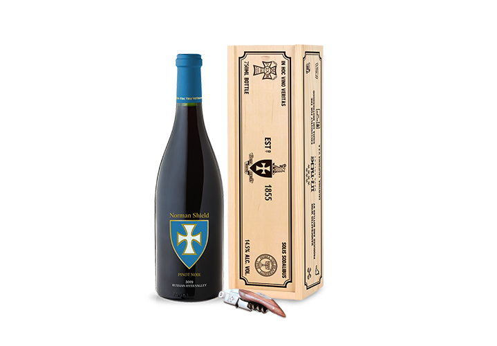 The 2019 Norman Shield Pinot Noir is from the Russian River Valley AVA of Sonoma County. This beautiful wine is influenced mostly by the fog of the AVA and is very aromatic, with a velvet mouthfeel, and has a fruit character that is ripe and intense.