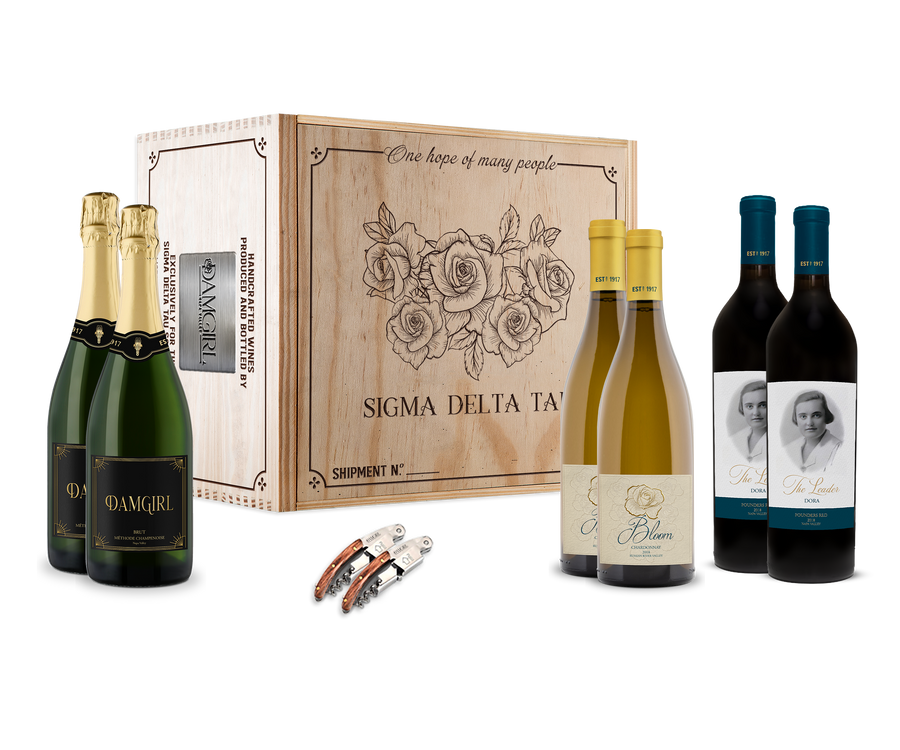 Our sparkling wine was created to honor the seven women who founded Sigma Delta Tau at Cornell University in 1917. Each founder brought something unique to the organization and their collective spirit created the legacy our sisters have been gifted. The DAMGIRL acronym was created as a way to highlight and discuss our founders using the first letter of each of their first names. Open a bottle of DAMGIRL wine to celebrate our seven founders and the special occasions in your life.