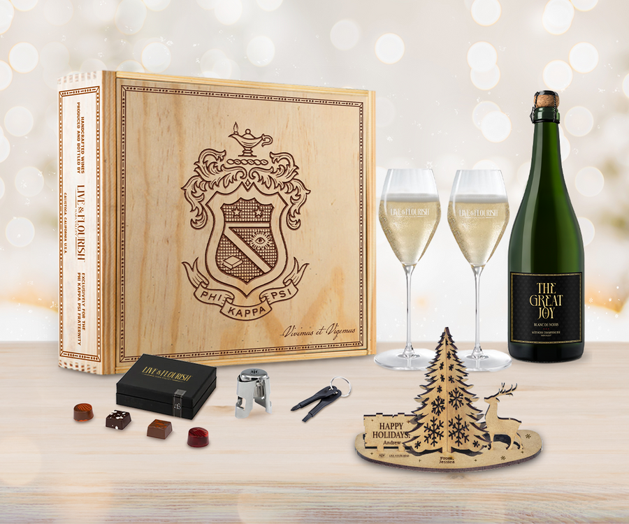 We introduce you to The Great Joy. This premium sparkling wine – meticulously and artfully made in the traditional champagne method – rivals anything found from the best Champagne houses in Épernay and Reims. Blended superbly from Chardonnay and Pinot Noir, this magnificent Napa Valley Brut exhibits rich fruit aromatics of strawberry and delicate white cherry that follows through to a creamy mid-palate accompanied with highlights of lime and wet minerality and a lingering vibrant finish.