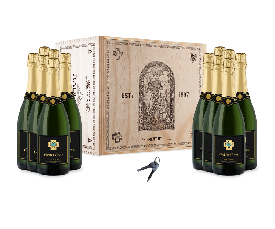 We introduce you to The Badge – Golden Cross. This premium sparkling wine – meticulously and artfully made in the traditional champagne method – rivals anything found from the best Champagne houses in Épernay and Reims. Blended superbly from 100% Pinot Noir, this magnificent Napa Valley Blanc de Noirs exhibits brioche and a hint of berry, with bright citrus in the aromas. The fine mousse brings along these notes in the mouth. Lingering finish of citrus that begs for another sip.