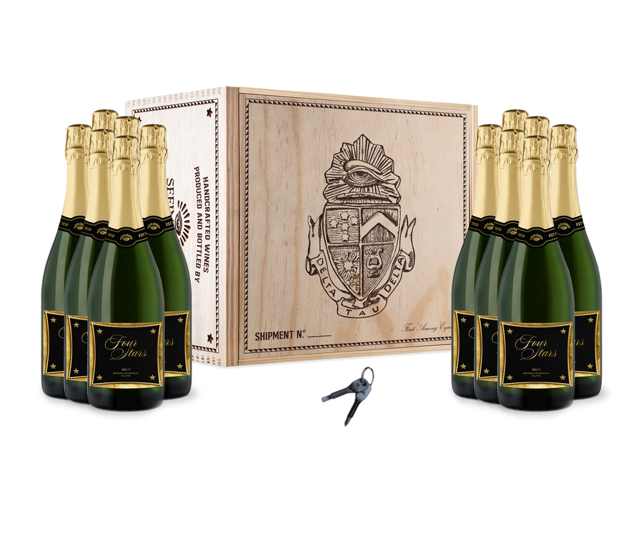 Whether you are enjoying with a brother, friend or family the Four Stars Champagne offers shades of nostalgia of a Delts journey. This premium sparkling wine – meticulously and artfully made in the traditional champagne method – rivals anything found from the best Champagne houses in Épernay and Reims. Blended superbly from Chardonnay and Pinot Noir, this magnificent Napa Valley Brut exhibits rich fruit aromatics of strawberry and delicate white cherry that follows through to a creamy mid-palate accompanied with highlights of lime and wet minerality and a lingering vibrant finish.