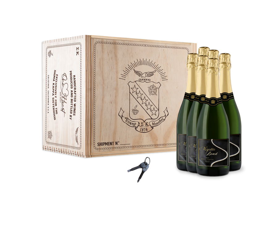 Our Mystic Bond Reserve brut sparkling was created to celebrate the best of times with our sisters. The Mystic Bond defines the connection all Sigma Kappa members share. A bond that transcends time, linking our Founders and Sigma Kappas past and present. It’s in this bond that Sigma Kappa members strive for a balance of social, spiritual and intellectual excellence, motivated to become the best versions of ourselves.
