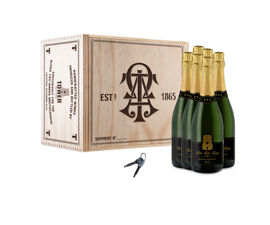 We introduce to you with tremendous pride, Ruh Rah Rega. This premium sparkling wine – meticulously and artfully made in the traditional champagne method – rivals anything found from the best Champagne houses in Épernay and Reims. Blended superbly from Chardonnay and Pinot Noir, this magnificent Napa Valley Brut exhibits rich fruit aromatics of strawberry and delicate white cherry that follows through to a creamy mid-palate accompanied with highlights of lime and wet minerality and a lingering vibrant finish. It should be shared among brothers in celebration of all life’s victories! Ruh Rah Rega!