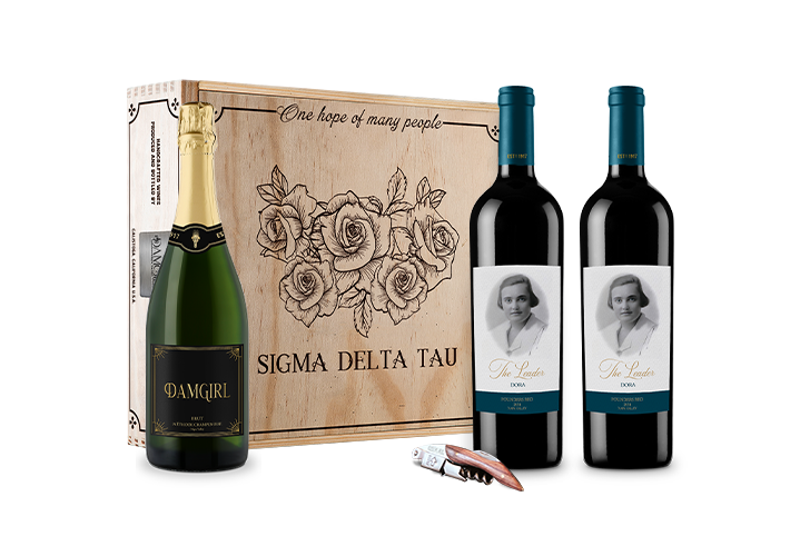 Our sparkling wine was created to honor the seven women who founded Sigma Delta Tau at Cornell University in 1917. Each founder brought something unique to the organization and their collective spirit created the legacy our sisters have been gifted. The DAMGIRL acronym was created as a way to highlight and discuss our founders using the first letter of each of their first names. Open a bottle of DAMGIRL wine to celebrate our seven founders and the special occasions in your life.