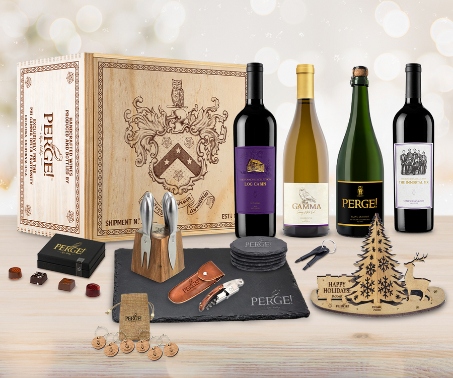We introduce you to PERGE!. This premium sparkling wine – meticulously and artfully made in the traditional champagne method – rivals anything found from the best Champagne houses in Épernay and Reims. Blended superbly from Chardonnay and Pinot Noir, this magnificent Napa Valley Brut exhibits rich fruit aromatics of strawberry and delicate white cherry that follows through to a creamy mid-palate accompanied with highlights of lime and wet minerality and a lingering vibrant finish.