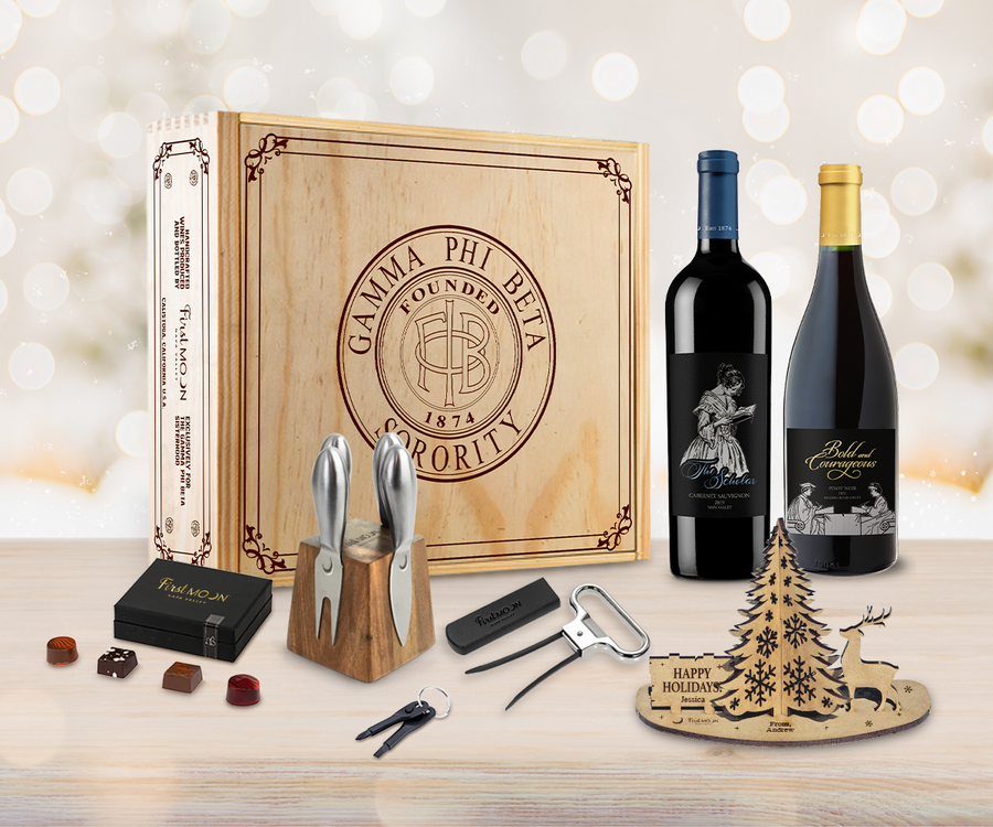 When Gamma Phi Beta’s four founders entered Syracuse University in the early 1870s, they were among a small but bold contingent of women intent on seeking higher education. To knowingly enter a difficult environment took courage and despite the gender disparity they faced, they persevered and completed their degrees. To combat these challenges, Helen, Frances, Addie and Mary created our True and Constant sisterhood, a welcoming haven that offered support, acceptance, enrichment and love for female students. This bottle’s label is inspired by an illustration that appeared in The Crescent in the early 20th century.